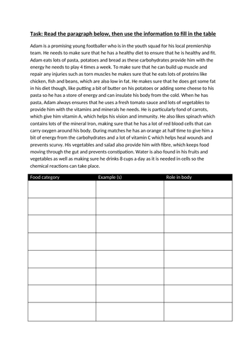 This full lesson includes a lesson powerpoint with student activities and tasks included within the document. Gcse pe aqa specification chapter 6 topic 6 5. A diet containing some nutrients in the correct proportions.
