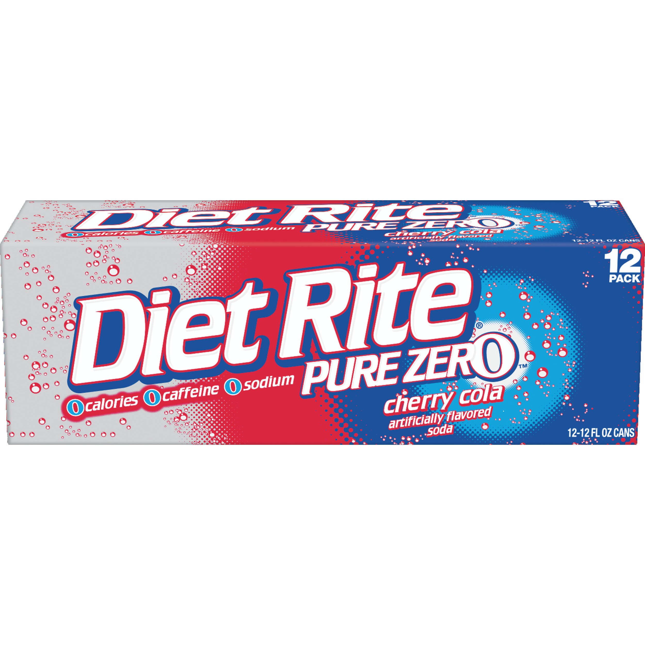 Diet rite cola has the pure crisp taste of a cola with zero calories zero caffeine and zero sodium. Since 1958 diet rite has been a flavor leader amongst diet soft drinks. 5 01 each 0 06 oz add to list. Diet rite cherry cola has the pure crisp taste of a cola with a sweet hint of cherry flavor with zero calories zero caffeine and zero sodium.