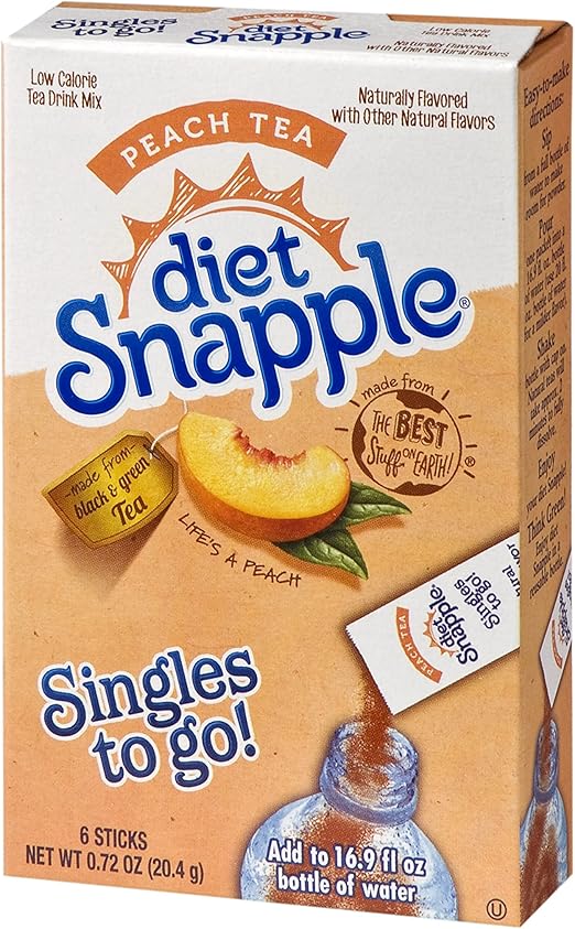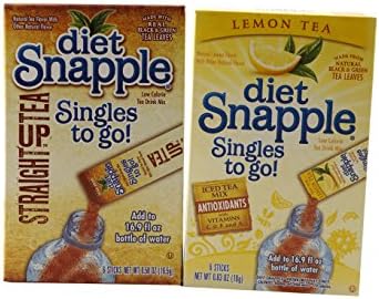 Diet snapple singles to go lemon tea 4 packets 4 pack by snapple. 4 1 out of 5 stars 2 ratings. Turn your water into delicious tea for on the go. We compared diet snapple singles to go water drink mix variety pack lemon tea raspberry tea peach tea flavored powder sticks discounts best reviews and promotions over the past 2 years for you at varietypack.