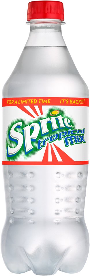 Sprite tropical mix bottle 20 fl oz sprite tropical mix bottle 20 fl oz introduced in 1961 sprite is the world s leading lemon lime flavored soft drink. Sprite zero diet sprite sprite light. Sprite ginger zero sugar. Rediscover the combination of the crisp familiar sprite lemon lime taste with delicious strawberry and pineapple flavors.