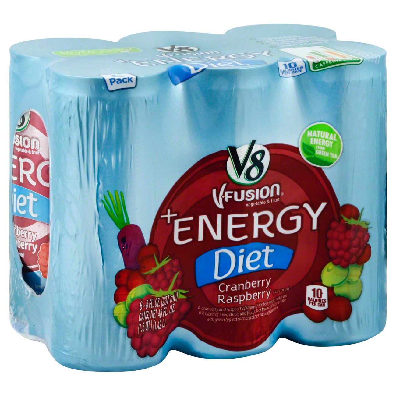 Get full nutrition facts for v8 fusion energy diet cranberry raspberry energy drinks and plan your meals using our online calorie counter and nutrition facts finder. V8 energy diet strawberry lemonade is an excellent source of b vitamins and has only 10 calories per can. A delicious energy juice drink powered by natural black green tea giving you 80 mg of caffeine about the same as a cup of coffee. 1 can 237ml.