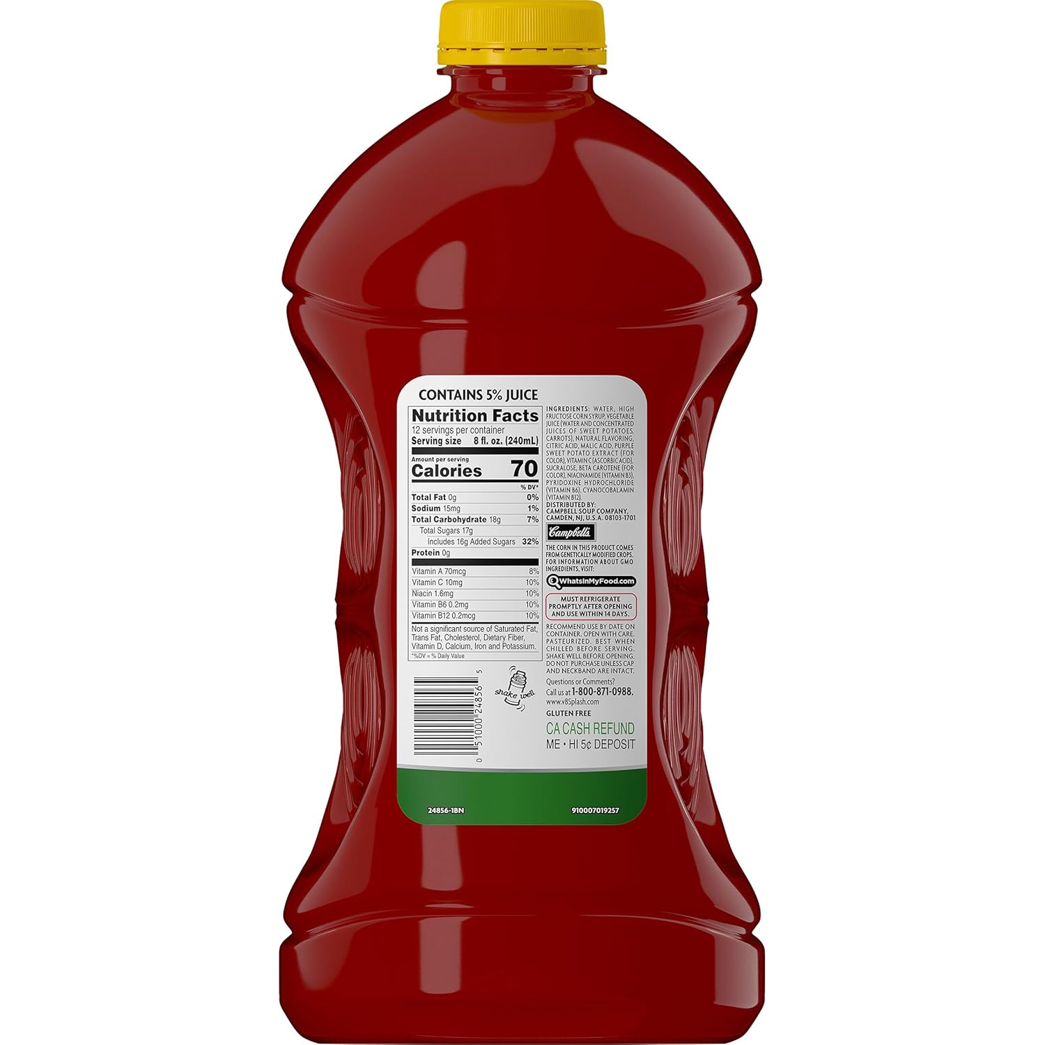 Diet v8 splash varieties are available in 64 ounce plastic bottles. 18 g is 6 of your daily recommended consumption for most people. Compared to foods in the same food group fruit juices this food has a stiff amount of carbs. Calories in v8 splash based on the calories fat protein carbs and other nutrition information submitted for v8 splash.
