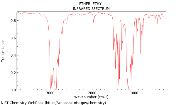 Diethyl ether ir spectrum analysis. Spectrabase spectrum id breuqc17yb1 the v20 1 and v39 1 states are near 100 cm 1 in vibrational. Click the mouse on the plot to revert to the orginal display. Gas 50 mmhg n2 added total pressure 600 mmhg. Top references notes data compiled by.