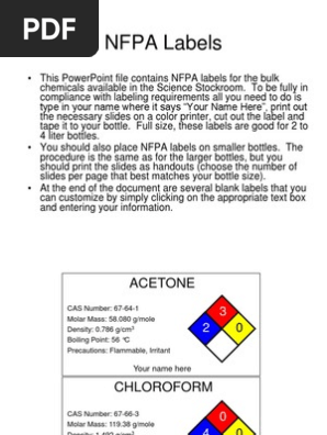 Chemical product and company identification product name. Nfpa labels this powerpoint file contains nfpa labels for the bulk chemicals available in the science stockroom.