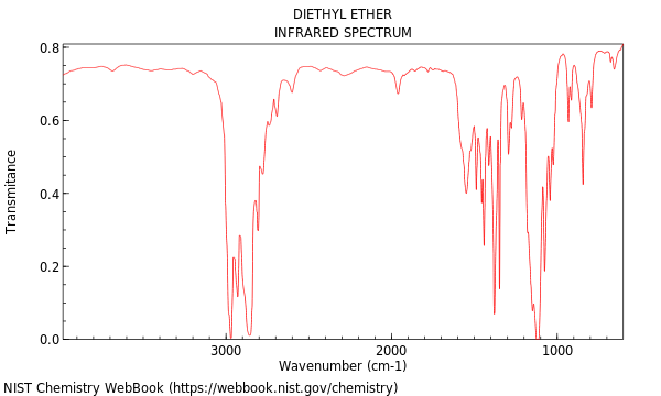 Ethyl ether mass spectrum. Gas phase kinetics database. Solution 10 in ccl4 for 3800 1300 10 in cs2 for 1300 620 10 in ccl4 for 620 250 cm 1 versus solvent. Following are examples of compounds listed by functional group which demonstrate patterns which can be seen in mass spectra of compounds ionized by electron impact ionization. A gas chromatographic method for the analysis of ethyl ether consists of a stainless steel column 1 2 m x 6 mm od packed with porapak q 50 80 mesh with hydrogen air flame ionization detection and nitrogen as the carrier gas at a flow rate of 30 ml min is a niosh approved method.