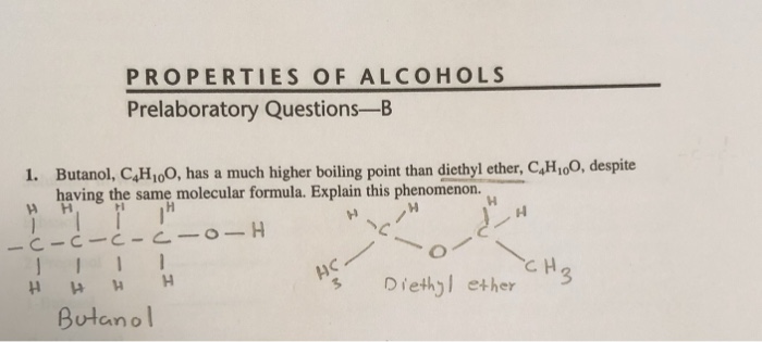 Higher boiling point than diethyl ether. For example ethanol ch3ch2oh and dimethyl ether ch3och3 are structural isomers but have different boiling points. Diethyl ether has no hydrogen bond which make it easier for molecules to break out when heated so it would have a low boiling point. Boiling is just about the bond between molecules of the substances or so i think. Diethyl ether and 1 butanol are similar in size number of electrons therefore their boiling points will be determined by polarity.